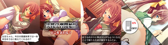 近親+αな妹との背徳行為。キャラがいやらしく動きながら反応する究極の妹いぢりゲーム!放課後、君は近親+αな可愛い妹と保健体育の実習だとかこつけ、人目を避けながら禁断の背徳行為をおこなう。